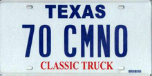 Texas Classic Truck license plates Photo credits: All plate pics are from TXDOT, eBay, or the author.