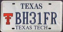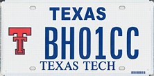 Texas Tech University license plates Photo credits: All plate pics are from TXDOT, eBay, or the author.