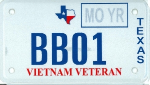 Vietnam Veteran (motorcycle) First Issued: 2004 Available as: Personalized, Disabled |