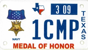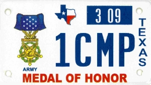 Texas Medal of Honor (Motorcycle) license plates Photo credits: All plate pics are from TXDOT, eBay, or the author.