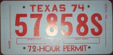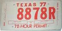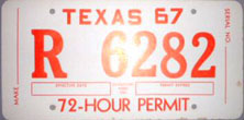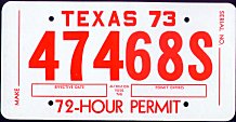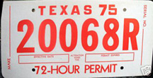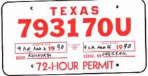 Texas 72-Hour Permit license plates Photo credits: All plate pics are from TXDOT, eBay, or the author.