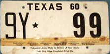 Texas FACTORY DELIVERY license plates Photo credits: All plate pics are from TXDOT, eBay, or the author.
