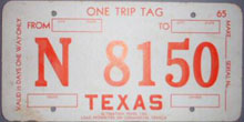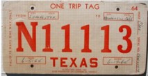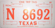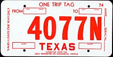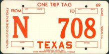 Texas ONE TRIP PERMIT license plates Photo credits: All plate pics are from TXDOT, eBay, or the author.