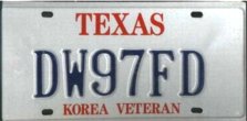 Texas KOREA VETERAN license plates Photo credits: All plate pics are from TXDOT, eBay, or the author.