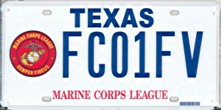 Texas MARINE CORPS LEAGUE license plates Photo credits: All plate pics are from TXDOT, eBay, or the author.