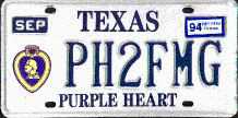 Texas PURPLE HEART license plates Photo credits: All plate pics are from TXDOT, eBay, or the author.