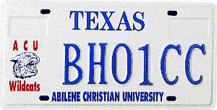 Abilene Christian U. (Abilene) First Issued: 1994 Available as: Personalized, disabled, personalized disabled. |
