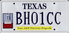 Texas A&M U. - Kingsville (Kingsville) First Issued: 2001 Available as: Personalized, disabled, personalized disabled. |