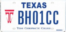 Texas Chiropractic C. (Pasadena) First Issued: 1994 Available as: Personalized, disabled, personalized disabled. |