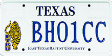 East Texas Baptist U. (Marshall) First Issued: 1996 Available as: Personalized, disabled, personalized disabled. |