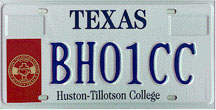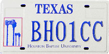 Houston Baptist U. (Houston) First Issued: 1994 Available as: Personalized, disabled, personalized disabled. |