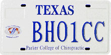 Parker College of Chiropractic (Dallas) First Issued: 1994 Available as: Personalized, disabled, personalized disabled. |