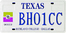 Richland College - Dallas (Dallas) First Issued: 1994 Available as: Personalized, disabled, personalized disabled. |