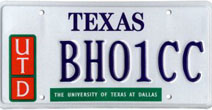 University of Texas at Dallas (Richardson) First Issued: 2001 Available as: Personalized, disabled, personalized disabled. |