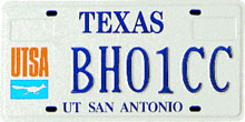University of Texas at San Antonio (San Antonio) First Issued: 1994 Available as: Personalized, disabled, personalized disabled. |