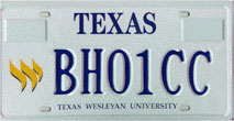 Texas Wesleyan C. (Fort Worth) First Issued: 1997? Available as: Personalized, disabled, personalized disabled. |