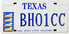 East Texas State U. (1994-2001?) Now called Texas A&M - Commerce Available as: personalized |