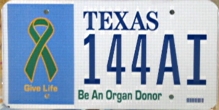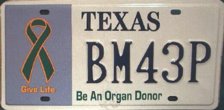 Texas Organ Donor license plates Photo credits: All plate pics are from TXDOT, eBay, or the author.