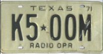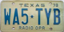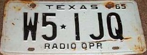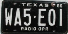 Texas RADIO OPERATOR license plates Photo credits: All plate pics are from TXDOT, eBay, or the author.