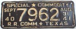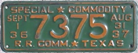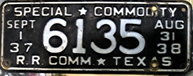 Texas Railroad Commission "Special Commodity" license plates Photo credits: All plate pics are from TXDOT, eBay, or the author.